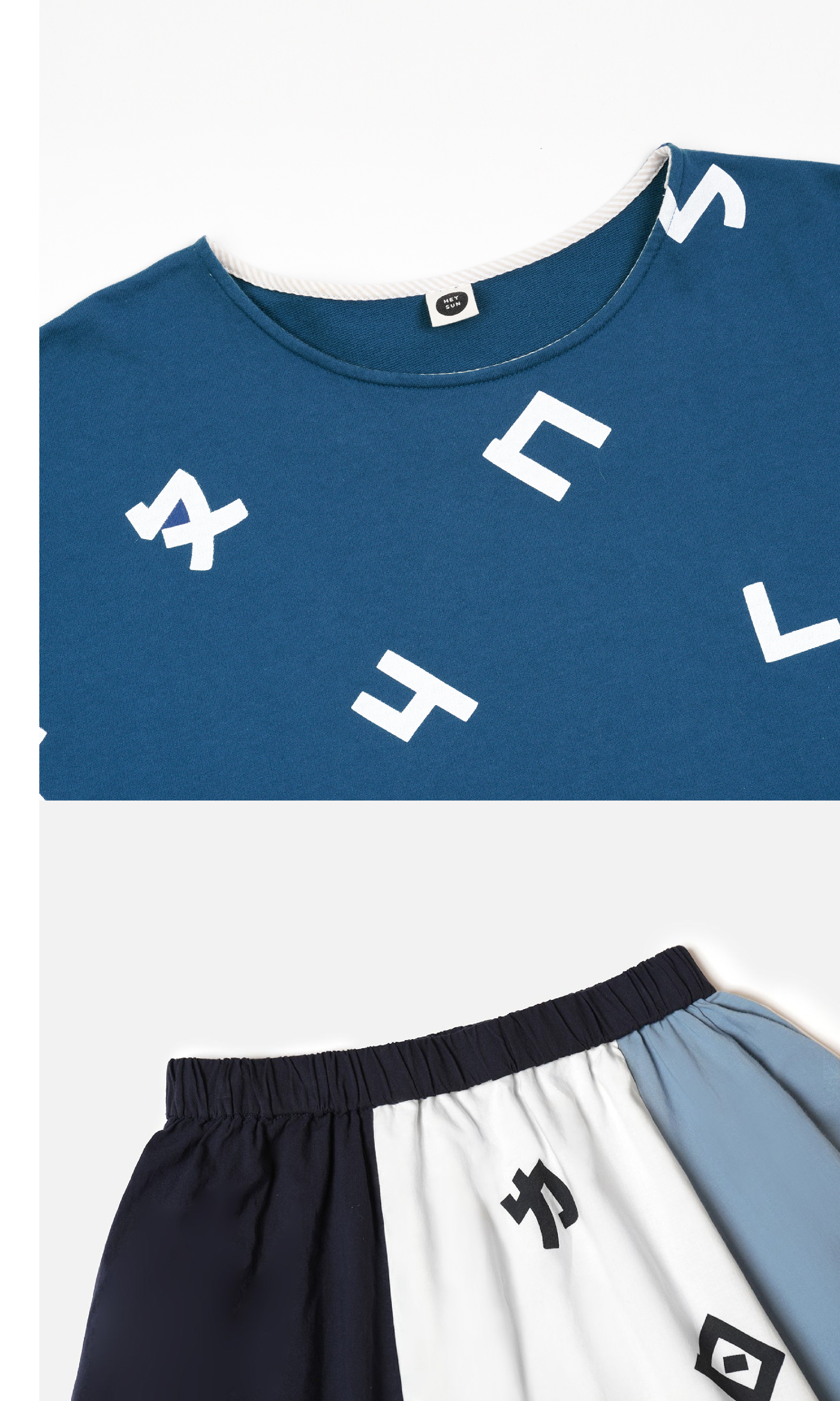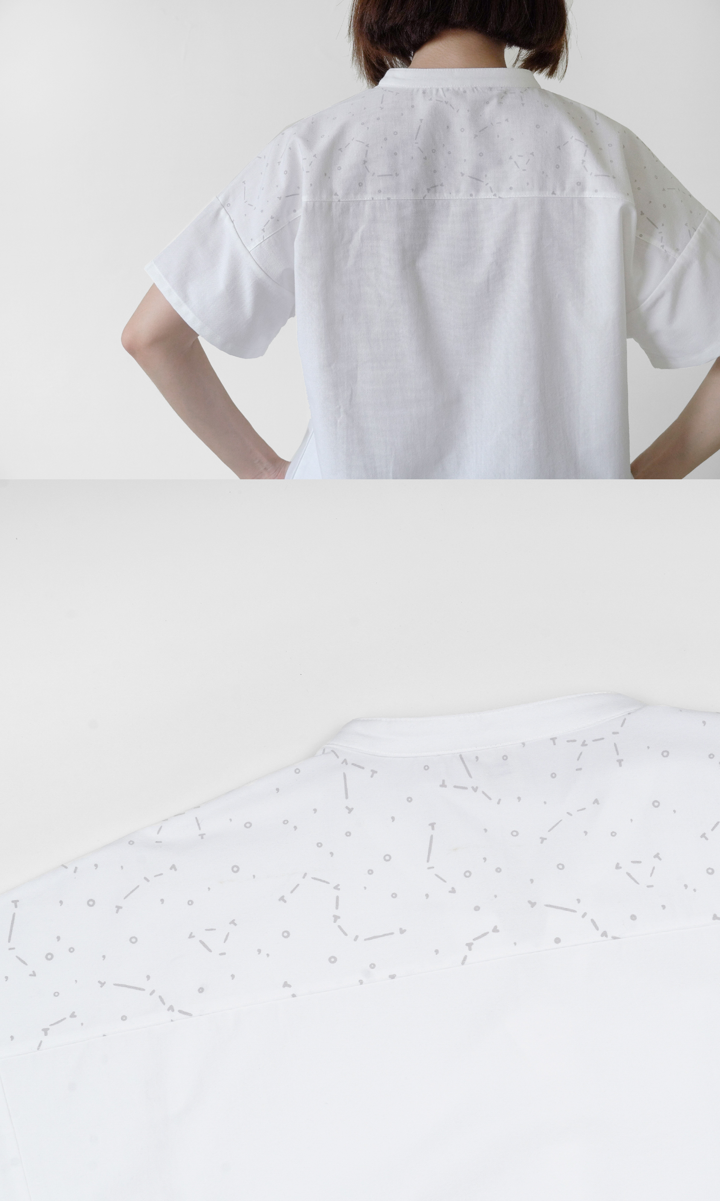 還有星空印花,搭配牛仔藍的稿紙裙以