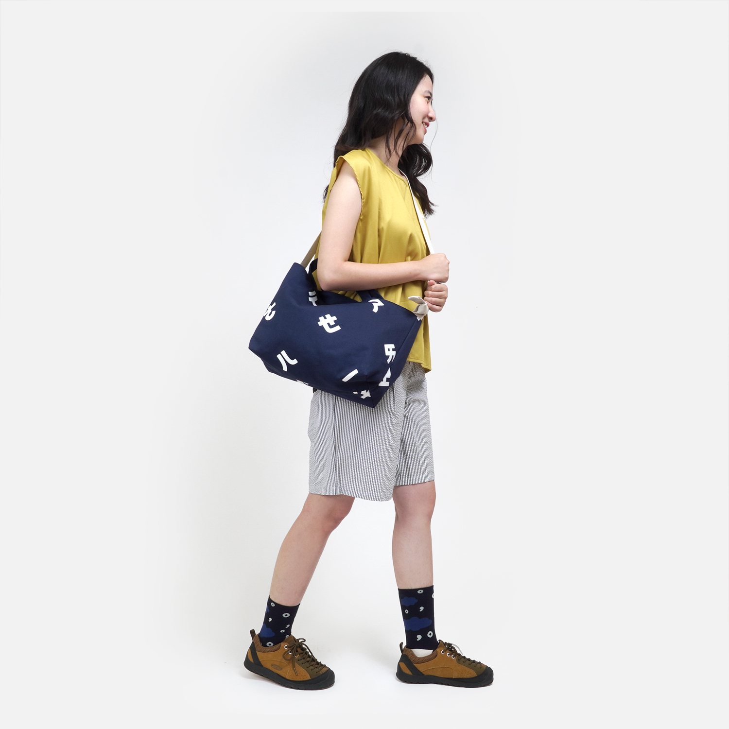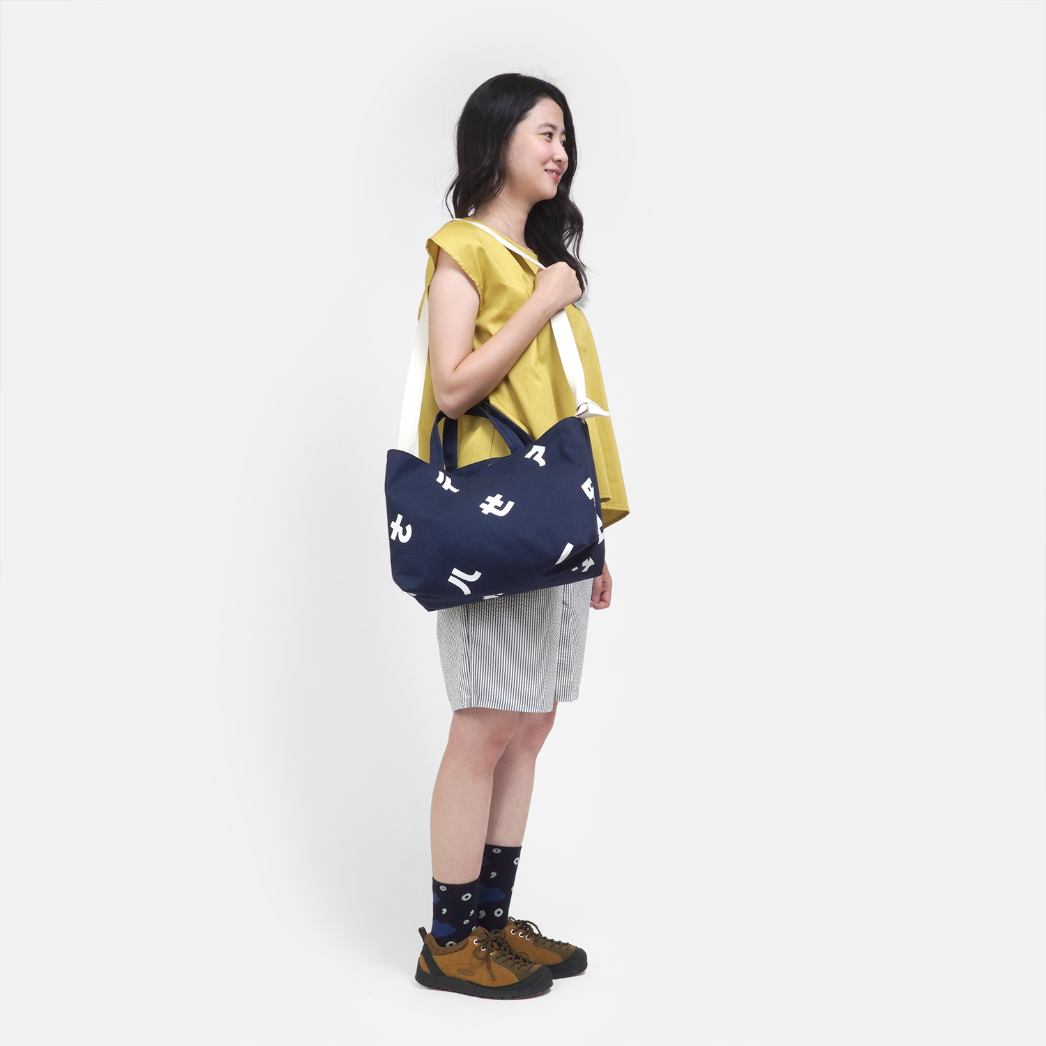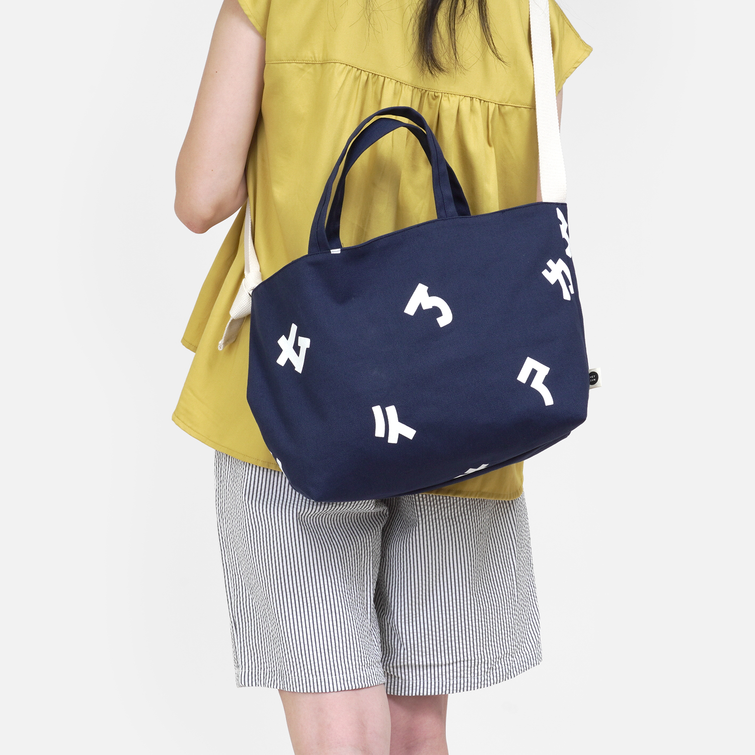 搭配 [ 注音符號兩用帆布包 / 深藍色  ],顏色好可愛,讓穿搭整個跳出來!